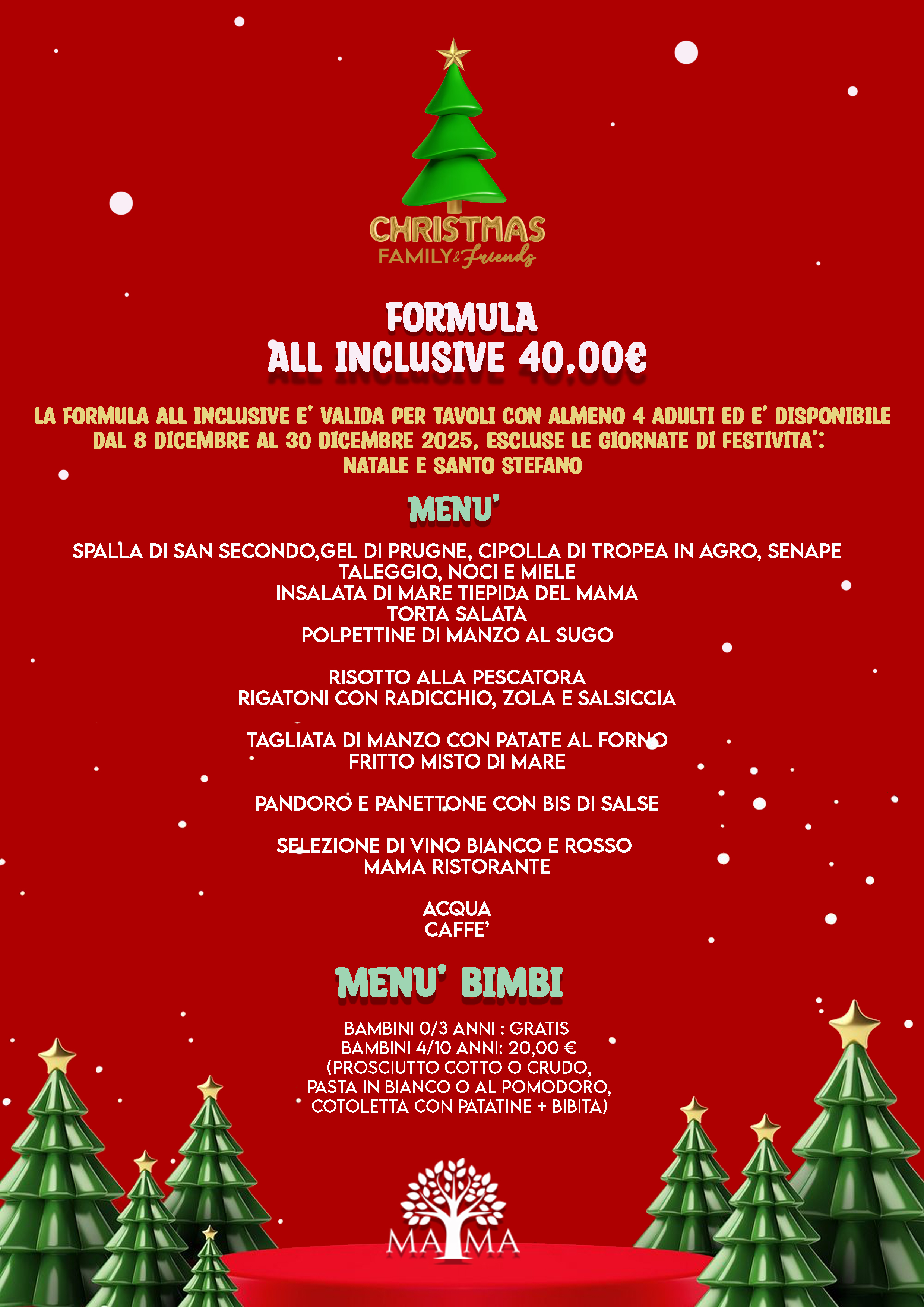 MENU' ALL INCLUSIVE CHRISTMAS 40 EURO!