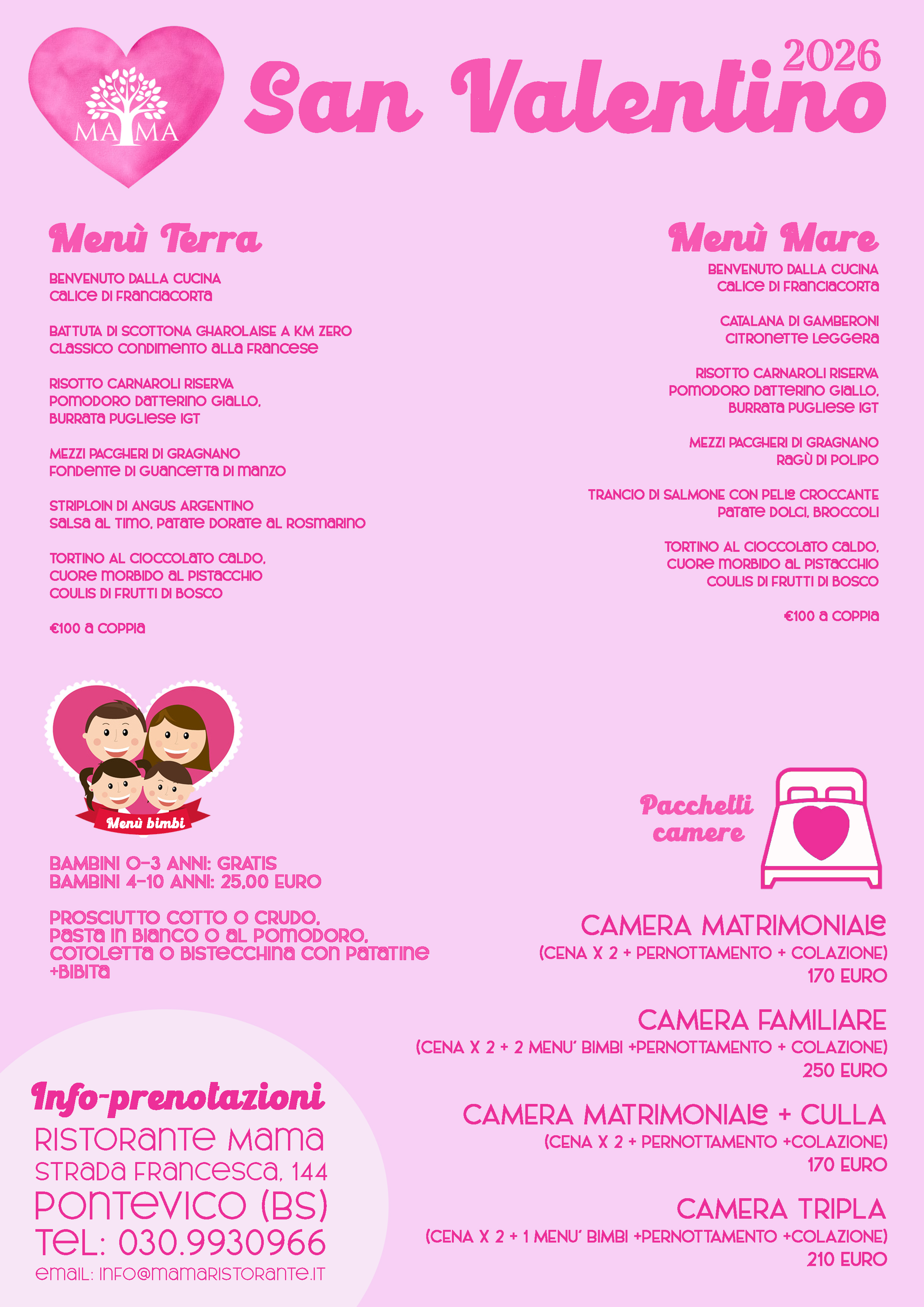 MENU' SAN VALENTINO Scarica il menĂ¹Scarica (pdf) CONTATTACI Info e prenotazioni: info@mamaristorante.it - 030 9930966 ← Post Precedente Pranzo di Natale 2022 (Sold out) Torna nella lista eventi Post Successivo → MENU' ALL INCLUSIVE GENNAIO/FEBBRAIO